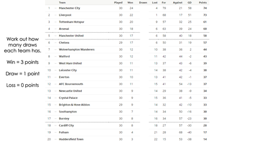 • the bottom team ( sheffield united fc) need 16 more points to escape automatic relegation.